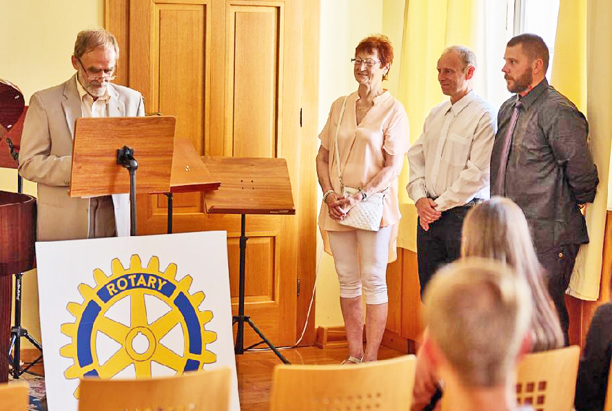 Po přivítání všech přítomných hostů i nominovaných dobrovolníků se Richard věnoval uvedení všech nejvýznamnějších projektů, které náš klub za 23 let existence uskutečnil. Zvlášť zdůraznil dva finančně nejnáročnější projekty – nákup svahové sekačky pro občanské sdružení Neratov a vybudování různě zaměřených odpočinkových zón v zahradě Stacionáře pro hendikepované mezi mosty, kde vynaložené finanční náklady přesáhly jeden milion Kč. Po vystoupení prezidenta našeho klubu následovala hudební skladba dvou dívek ZUŠ ze sekce dechových nástrojů. Po ní dostal prostor ke svému vystoupení starosta Trutnova. Ten poněkud překvapivě hned v úvodu uvedl, že se svým vystoupením nepočítal a proto si ho nepřipravil. Omezil se na poděkování dobrovolníkům, kteří podle něj konají velmi záslužnou činnost. Dále pak už jen oznámil, že musí hned s místostarostou a fotografem Šálkem odejít, neboť musí na sousední radnici udělovat kulturní cenu města Trutnova. Po tomto sdělení skutečně všichni uvedení zástupci vedení města odešli. Následovalo další hudební vystoupení žáků ZUŠ a pak president klubu vyzval sekretáře RC Karla Javůrka k seznámení s oceňovanými dobrovolníky. Aktivní dobrovolníky tentokrát nenominovalo dobrovolnické centrum oblastní Charity, neboť dosavadní vedoucí tohoto centra pí Vágnerová Dostálová ve své funkci skončila a své nástupkyni žádné podklady k vyhodnocení nepředala. Proto jsme tentokrát oceňovali pouze dobrovolníky, kteří pomáhají v činnosti Klubu vozíčkářů a dobrovolnice ze SZŠ.