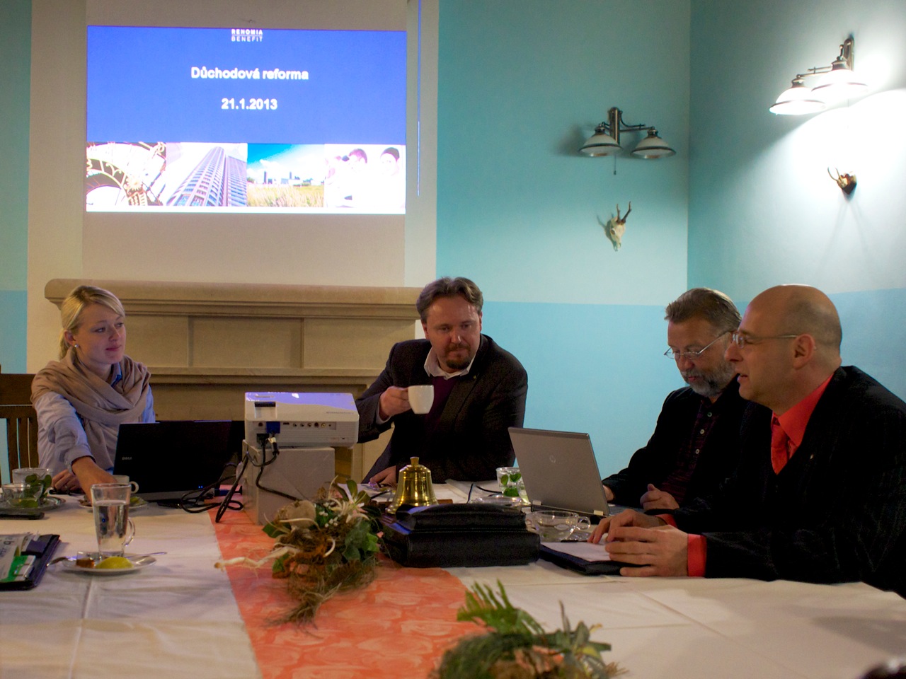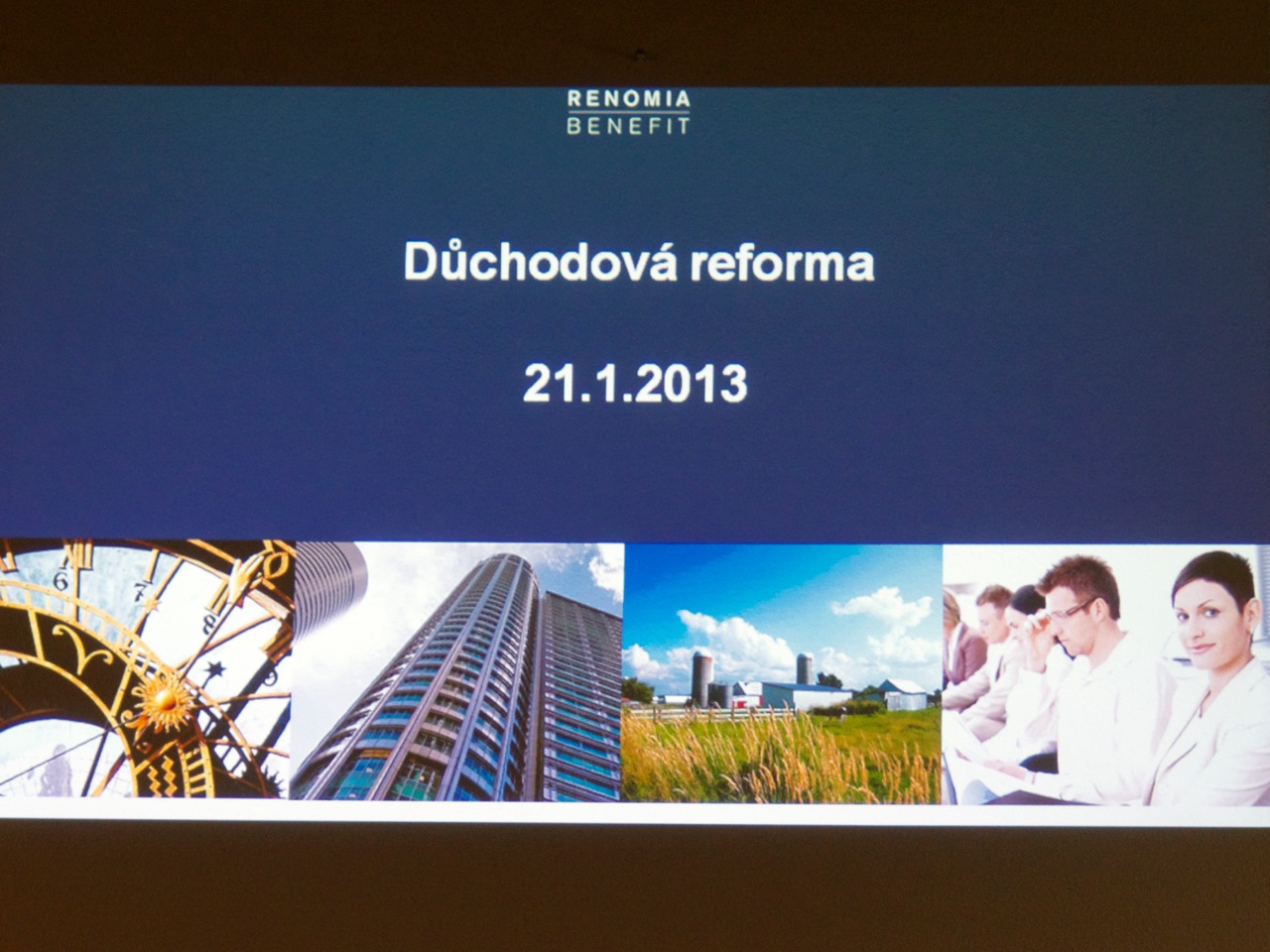 Paní Tvrzová představila nejprve společnost. Renomia je největší brokerská firma v ČR, zajišťuje všechny pojišťovací služby jak pro společnosti, tak i osoby - pojištění cestovní, odpovědnosti, životní, zdravotní, úrazové… Je korporátním makléřem, zprostředkovává zejména pojištění průmyslu a až pak se dovyvinula i odvětví osobních pojistek. V současnosti zodpovídá za 5 mld. pojistného; z toho 36 tis. pojistných smluv za 120 mil. pojistného ročně v oblasti osobních pojistek.
