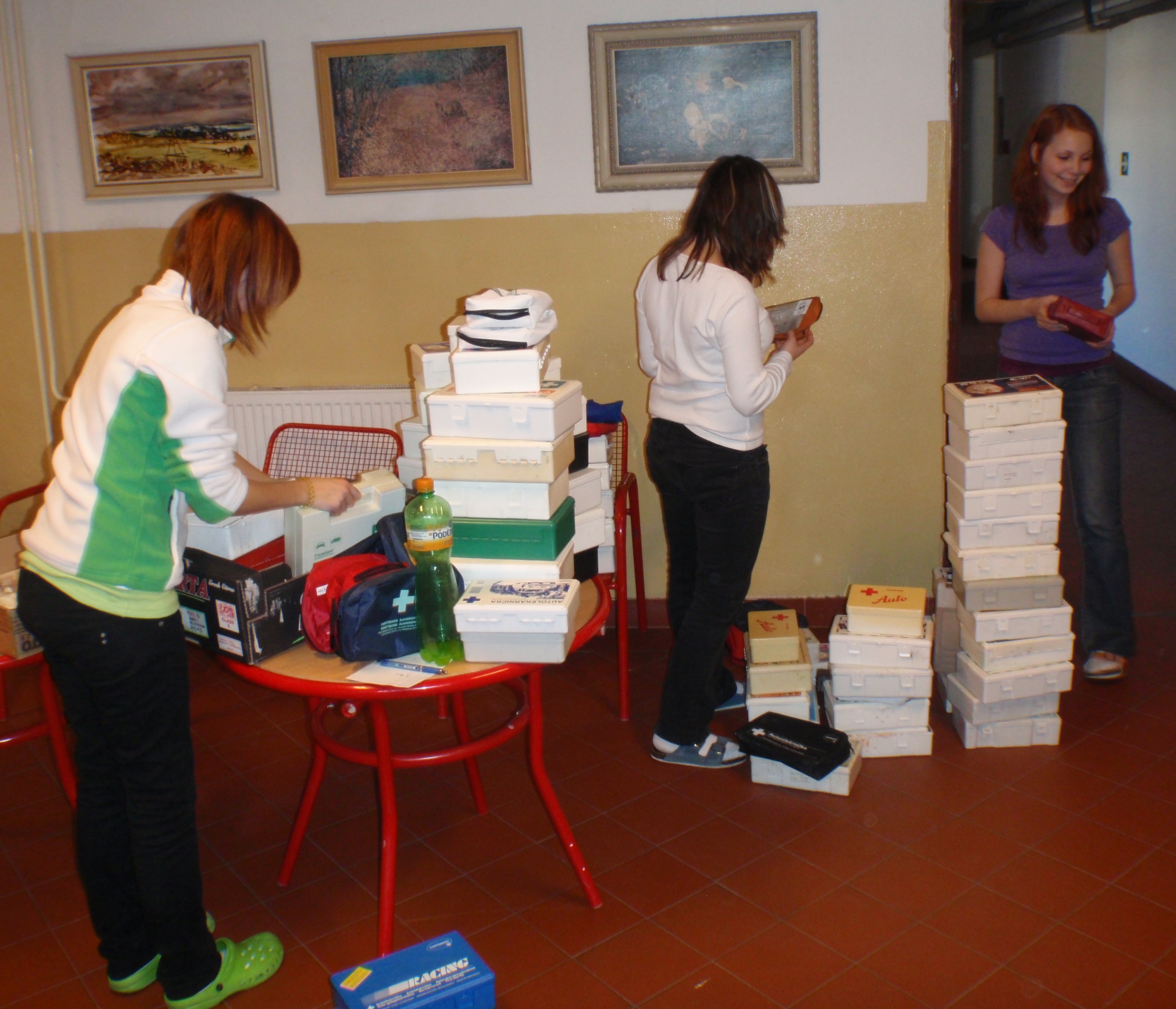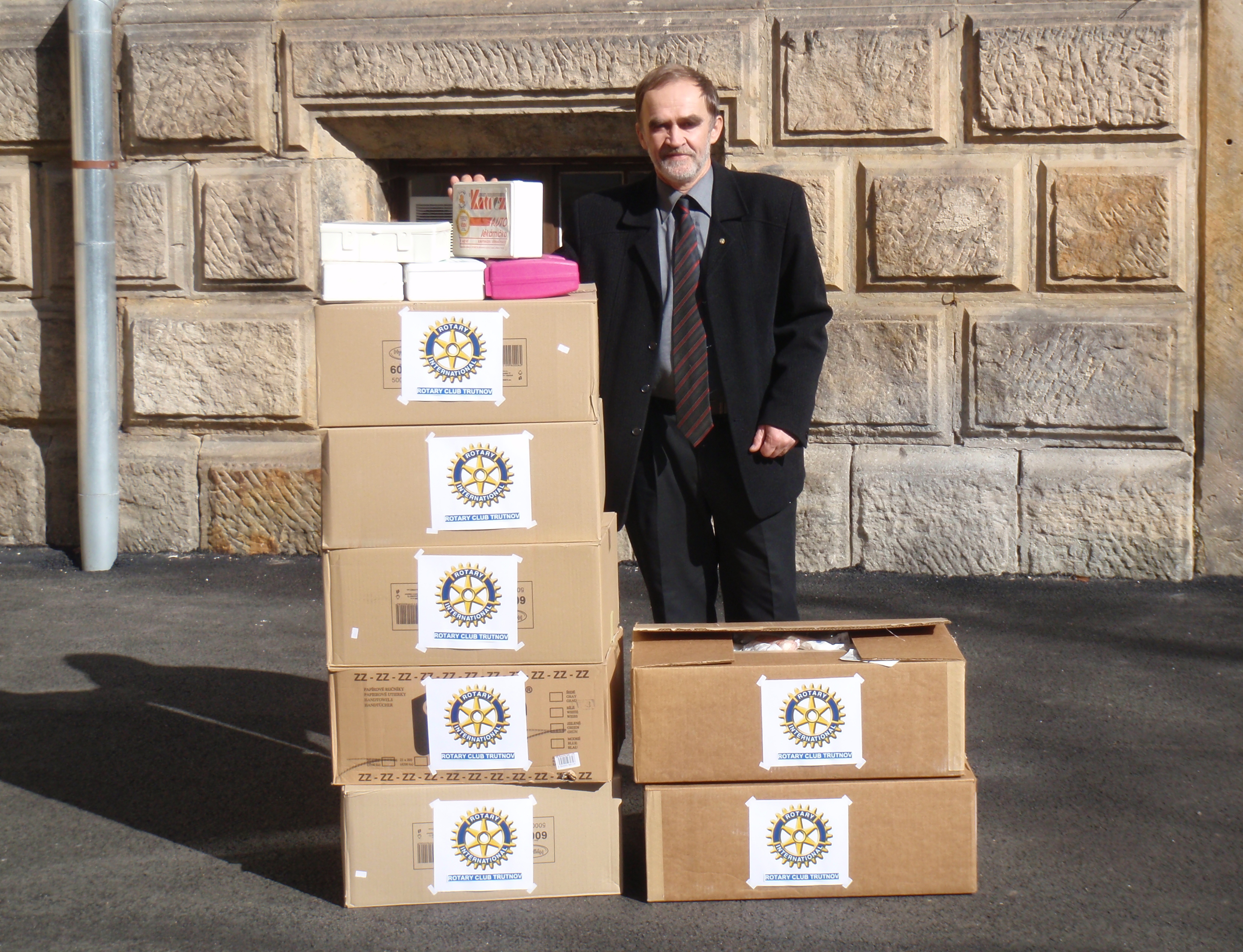 - Informoval jsem členy RC o tom, že akce „Sběr autolékárniček“ byla právě ukončena. Tím, že se mi podařilo rozšířit plakátky s výzvou na sběr prošlých autolékárniček do čekáren zdravotnických zařízení, za pomoci Richarda Houdka i do veřejných dopravních prostředků, a účinně oslovit i ředitele ZŠ v Trutnově, jejichž žáci apelovali na svoje rodiče, bylo vysbíráno celkově 216 ks lékárniček. Studentky z mojí školy jejich obsah odborně posoudily, vytřídily a použitelný zdravotnický materiál naskládaly do krabic. Krabice s logem Rotary za náš klub jsem dnes ráno převezl na sběrné místo do Hradce Králové, kde je zajištěn svoz pro centrum Odry v Praze.