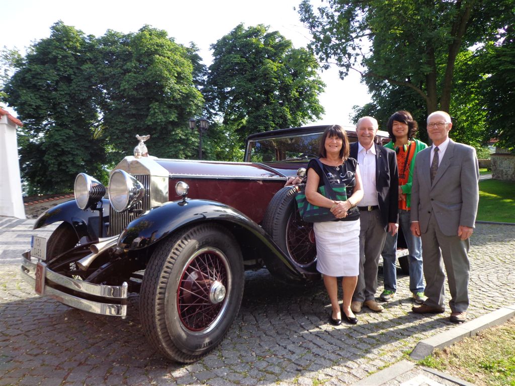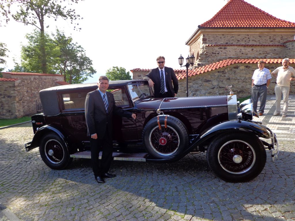 Na úvod přivezl oba prezidenty do areálu hradu Hněvín svým veteránem Rolls Royce přítel Puhalla.