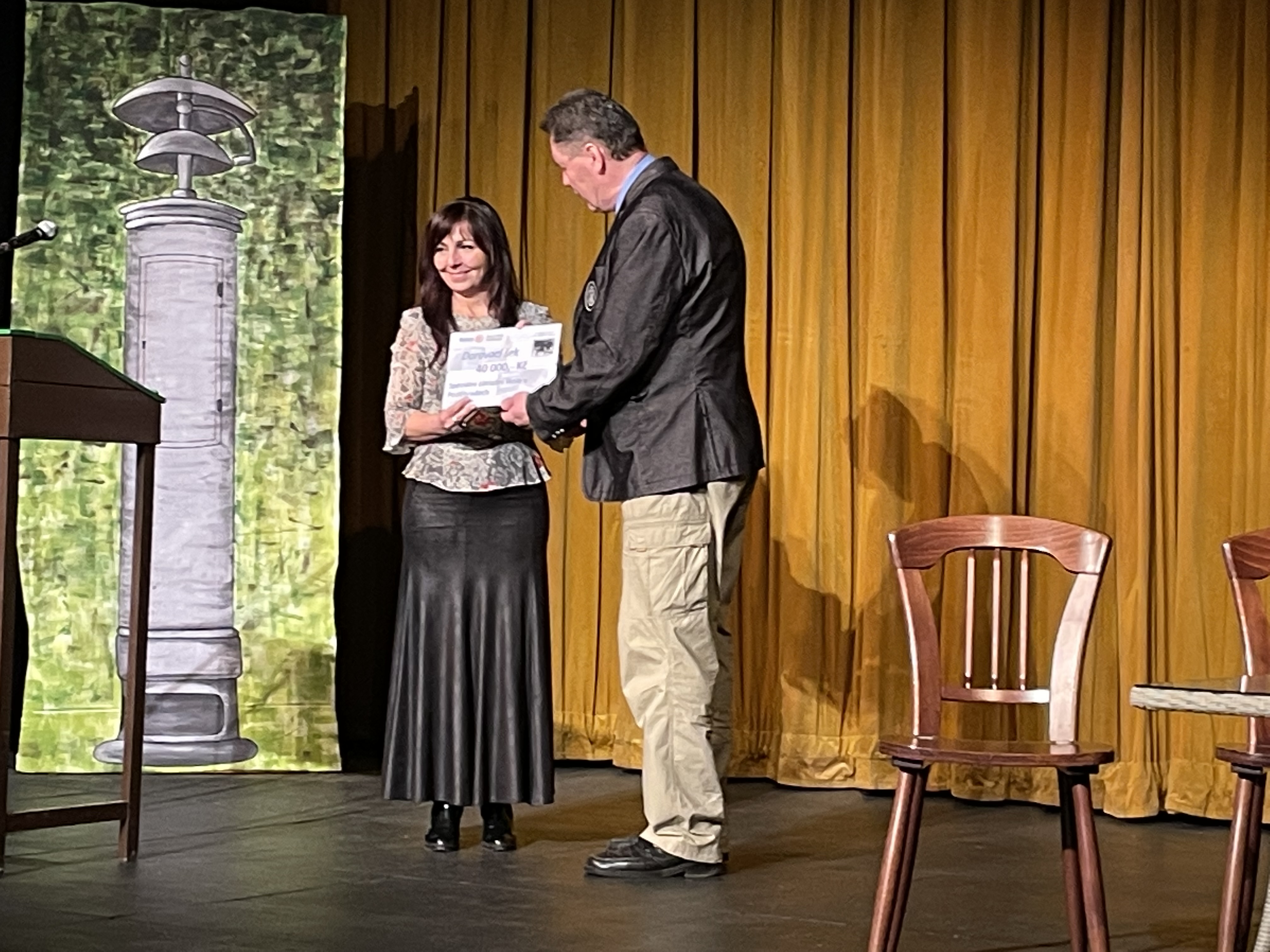 Vydařený večer s představením hry "Švestka" z Divadla Járy Cimrmana se stal setkáním téměř 100 rotariánů a jejich přátel z Prahy, Jičína, Nymburku a Pardubic, kteří tuto akci využili jako jednu z mála možných osobních setkání v této době. Druhou polovinu zaplněného divadla tvořila veřejnost ze širokého okolí. Všichni tak přispěli ke krásné atmosféře korunované výborným výkonem herců, odměněný bouřlivým potleskem. Před zahájením představení prezident klubu Karel Kronus předal šek v hodnotě 40 000,-Kč paní ředitelce Speciální školy v Poděbradech jako příspěvek pro nákup speciálního komunikačního panelu pro komunikaci dítěte pomocí očního kontaktu přes počítačové rozhraní a terapeutické židle pro Zuzanku a Vojtu ze speciální školy v Poděbradech.