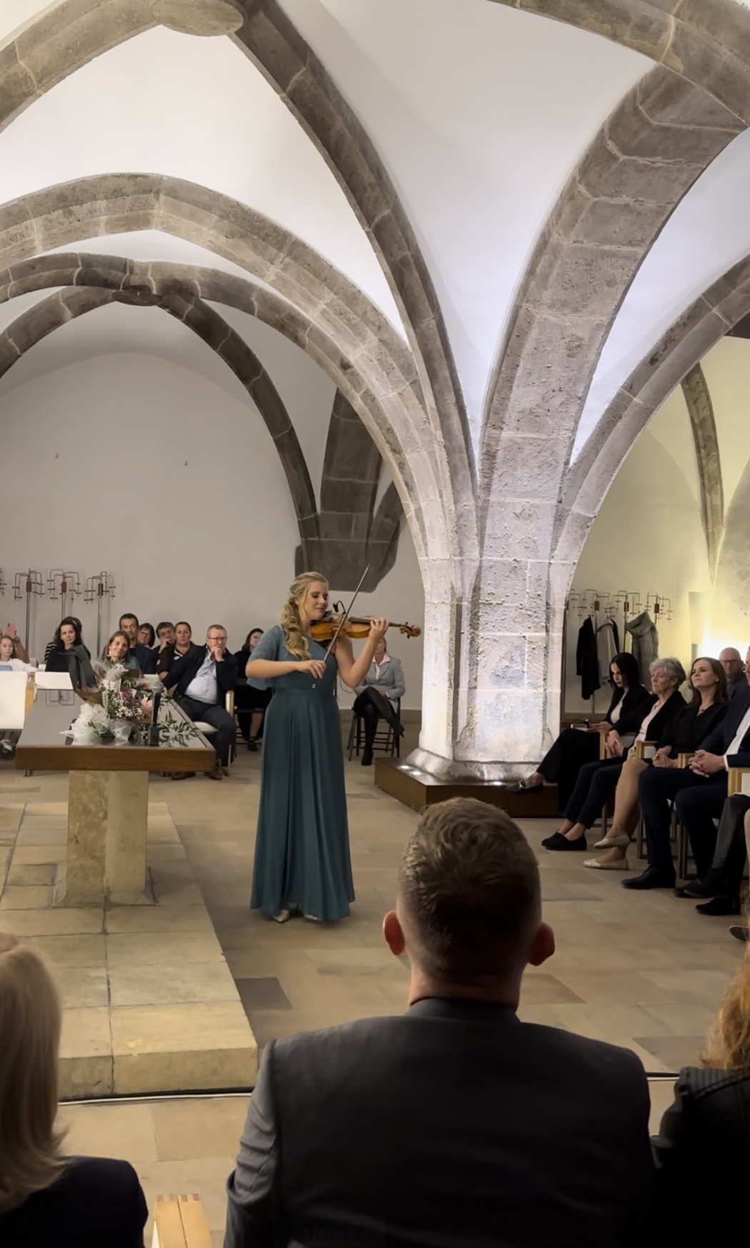 V krásnych priestoroch Rytierskej sály Zvolenského zámku náš RC usporiadal benefičný koncert pre mladú huslistku Martinku Výbohovú, ktorá predviedla svoje umenie a naši hostia odchádzali obohatení pekným hudobným zážitkom.