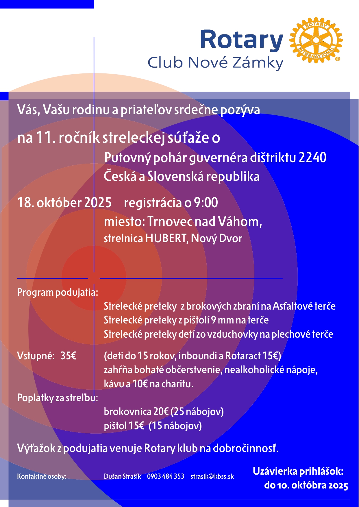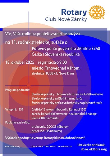 RC Nové Zámky usporiada streleckú súťaž o Putovný pohár guvernéra dištriktu 2240.