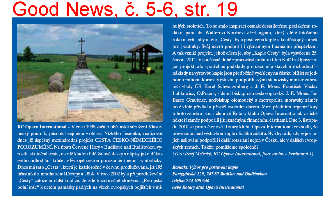 Podrobnosti byly zveřejněny rovněž v posledním loňském čísle Good News na str. 19. Článek je přiložen také zde.