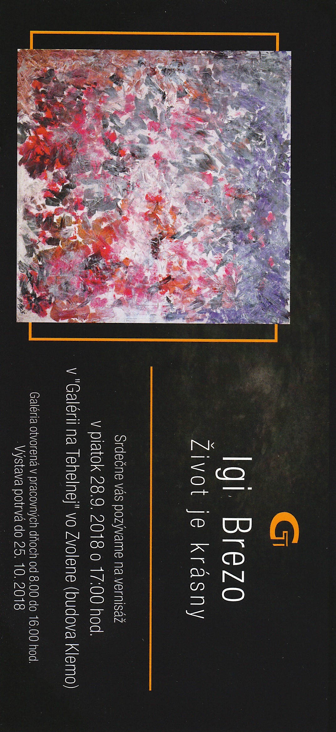28. 9. 2018 o 17. 00 hod. v "Galérii na Tehelnej" vo Zvolene (budova Klemo)
