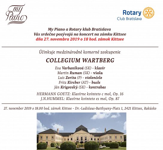 Rotary klub Bratislava Vás srdečne pozýva na koncert medzinárodného komorného zoskupenia COLLEGIUM WARTBERG.